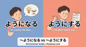 | Related verb | できる (dekiru) — to be completed/made | こわれる (kowareru) — to be broken (intransitive) |